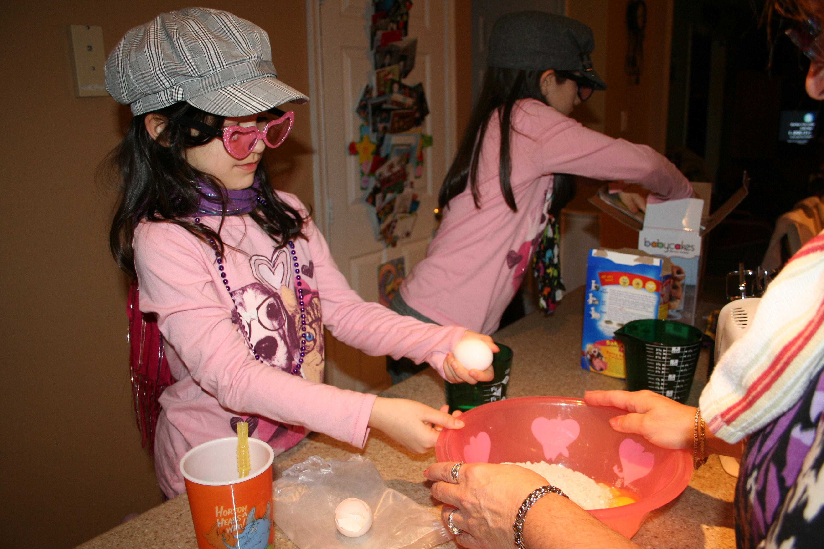 To start our Donut Wars, we came up with two teams based on the cake mixes we were going to use for our donuts. You can use the recipes included in the box or cake mixes. For our first time we opted for cake mixes, although I do plan to eventually try out some of the recipes that come with the maker. My sister-in-law had a Funfetti Christmas cake mix and a Strawberry Cake mix, so we named our two teams the Festivus Christmas Team and the Pinkalicious Team. We paired the kids up into two teams of two and each team had one adult captain. (Jessica’s youngest wanted to be a judge, the two daddies were judges and Jess was a floater.) To make it even more fun, the kids dressed up in funky clothes and accessories.