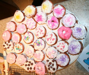 3) Overall it took about an hour to go from start to finish and that’s with captains and floaters. If I were doing this for a playdate I’d make the donuts ahead and let them decorate them. This would help with time, space and less of a chance of anyone getting burned.