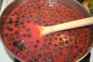 The hot blueberry compote is kind of a neat recipe to make. It looks completely different from beginning to end, and I find it interesting to watch it go from a bright red color when you start, to a deep purple color when it’s done.