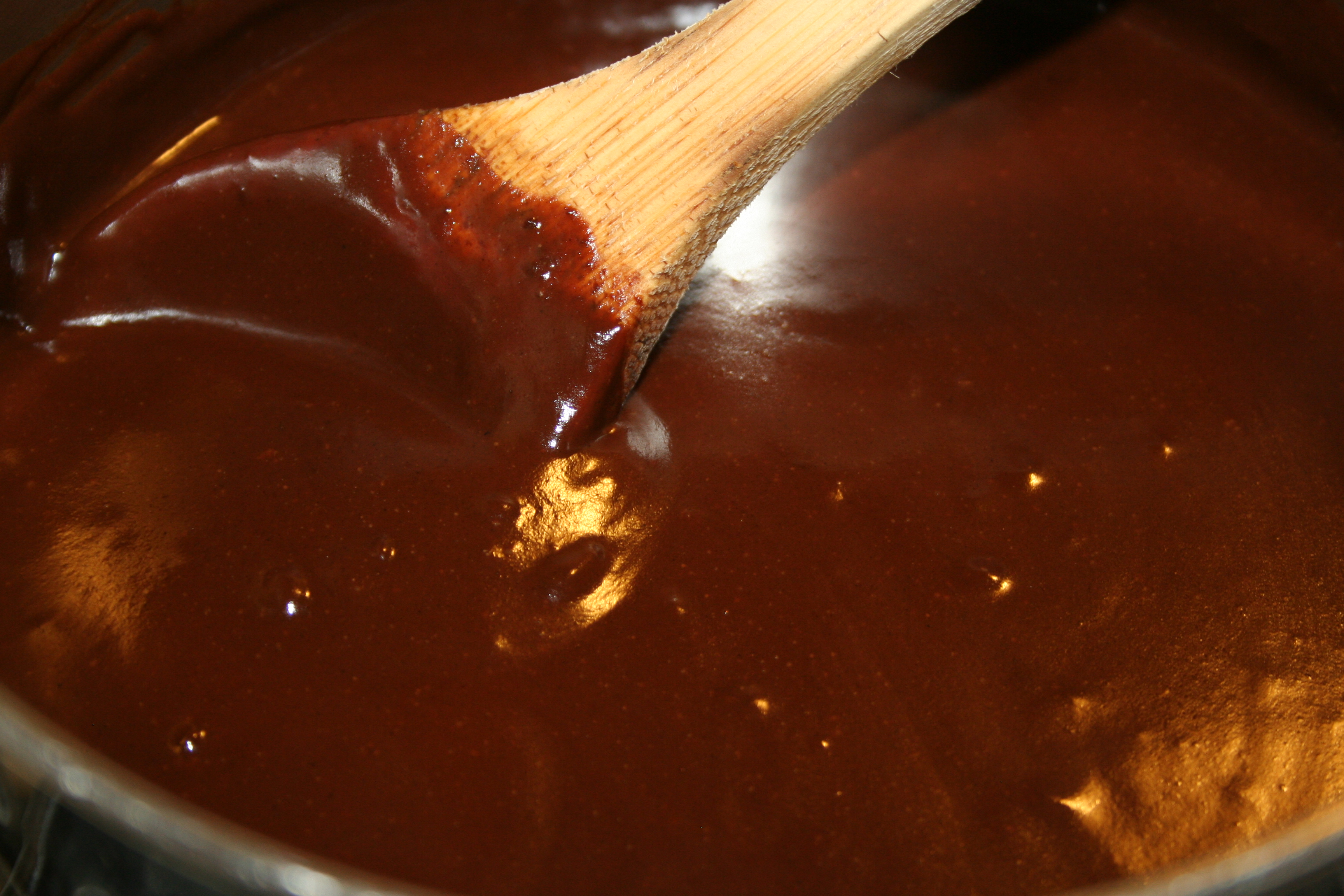 Add chocolate chips, return to a boil over medium heat stirring constantly until chocolate is melted, slightly thickened and smooth.