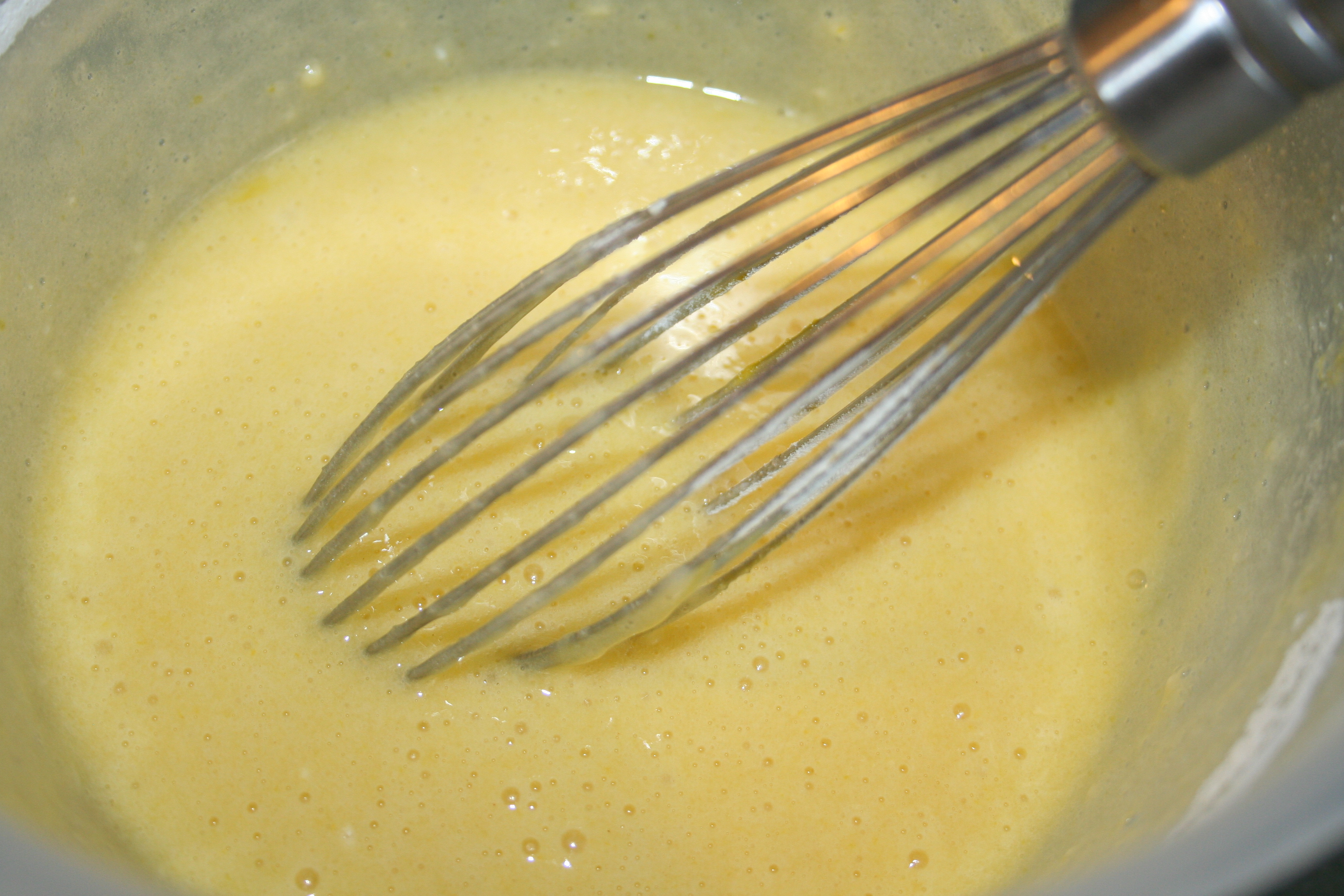 Pour 3/4 of the batter into the melted chocolate and stir well.