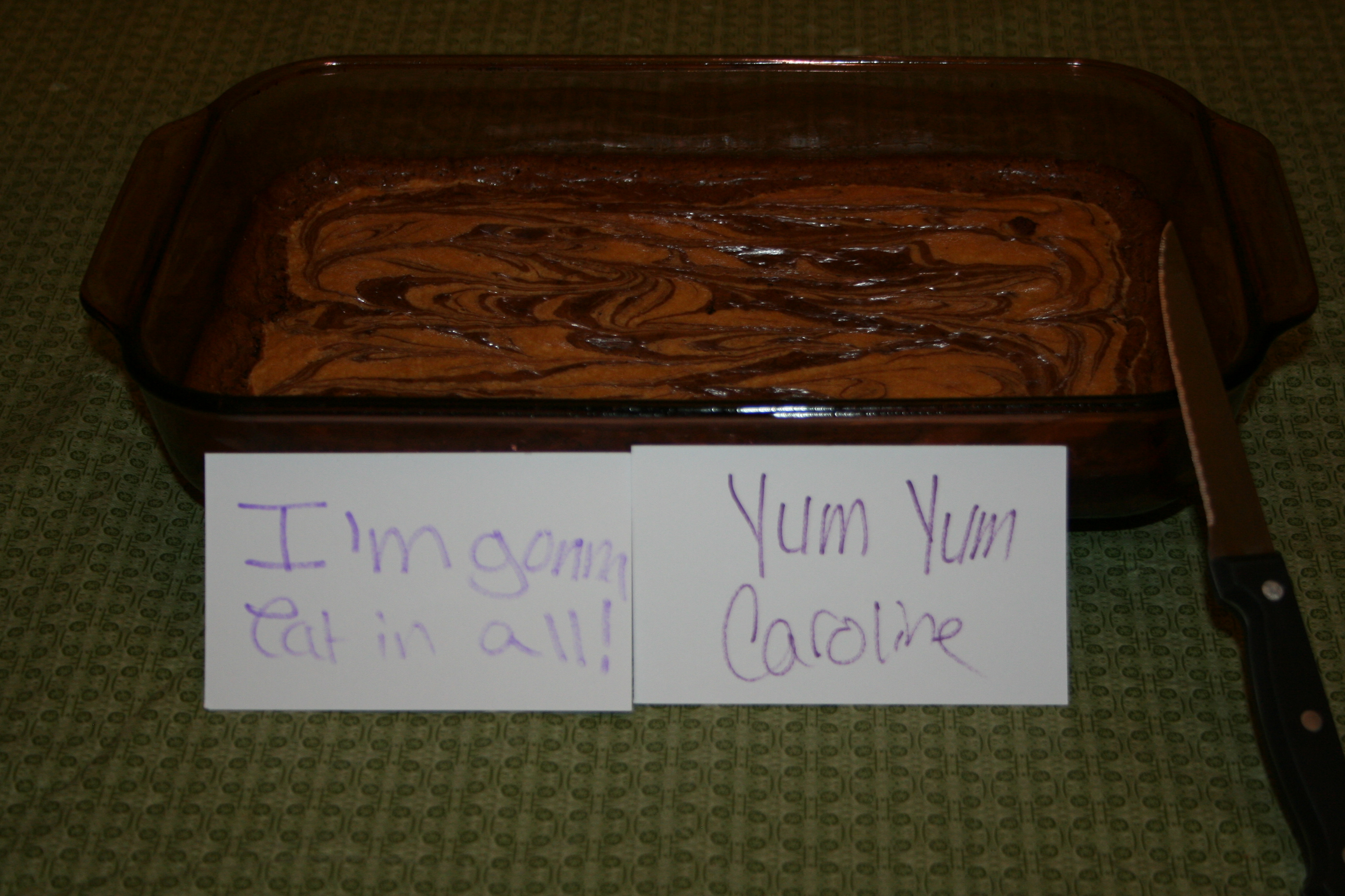 I looked through a cookbook or two, and then I remembered Karen’s Cookbook, and the fact that last time I’d gone through it I’d seen an old favorite of mine: Peanut Butter Swirl Brownies.