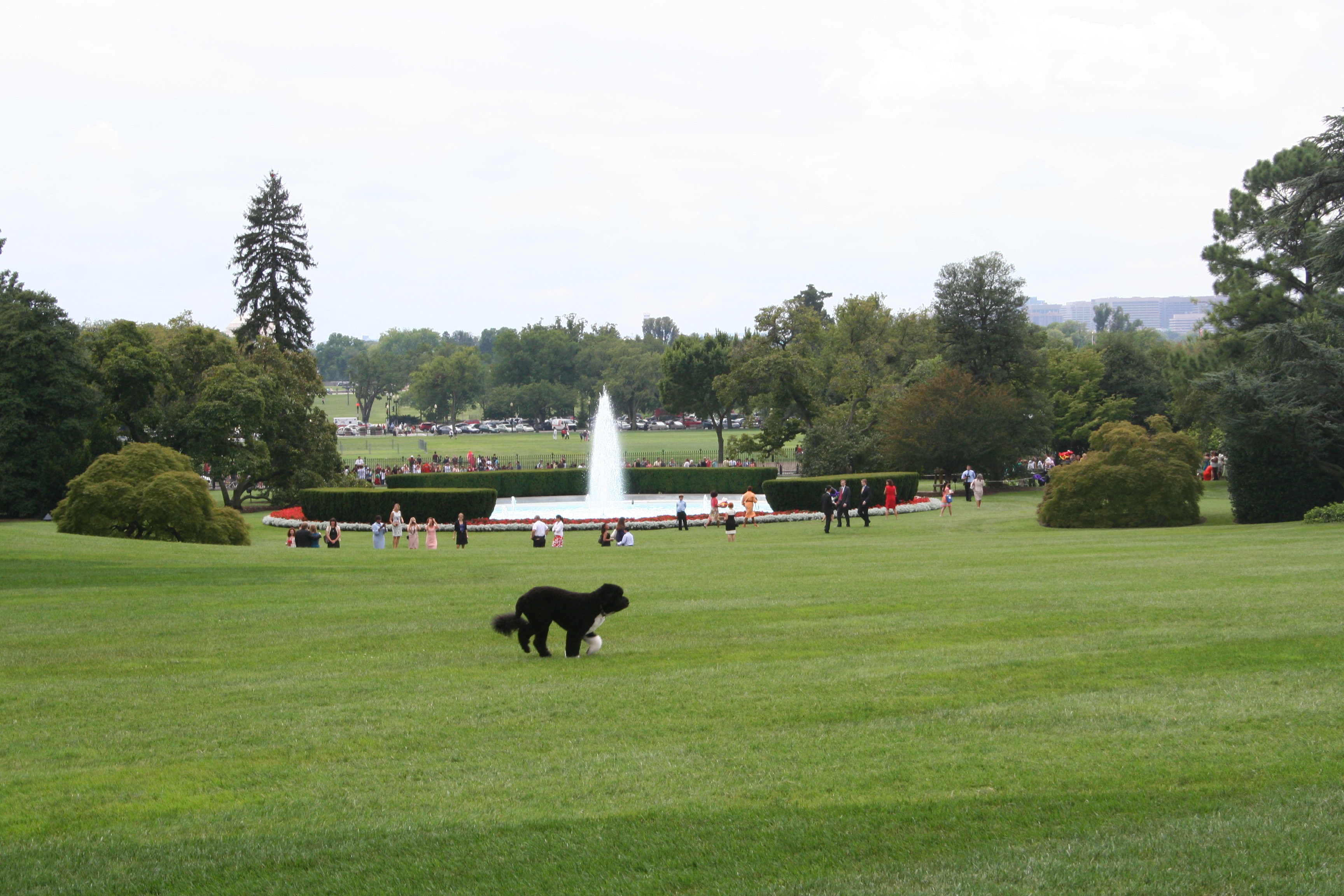 trained than my dog is! It was also heartwarming to see a swing set in the side yard for the Obama girls to play on. It made it look so “normal” there, mixed in with all the Secret Service vehicles and all of the fountains and formal flower gardens.