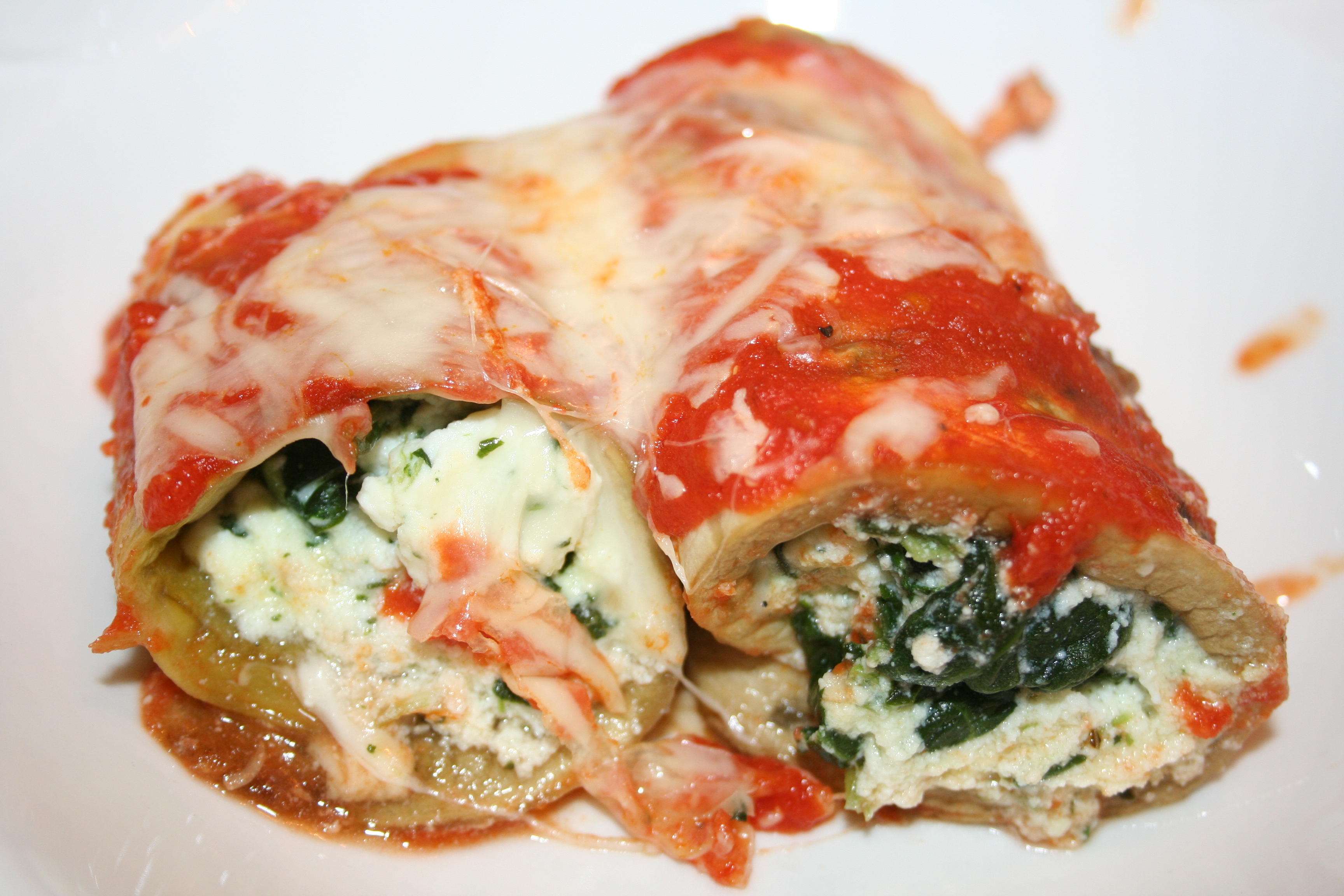 Jump ahead through December and all of our fat-free recipe research, past the holidays and I’d totally forgotten about Eggplant Rollatini.