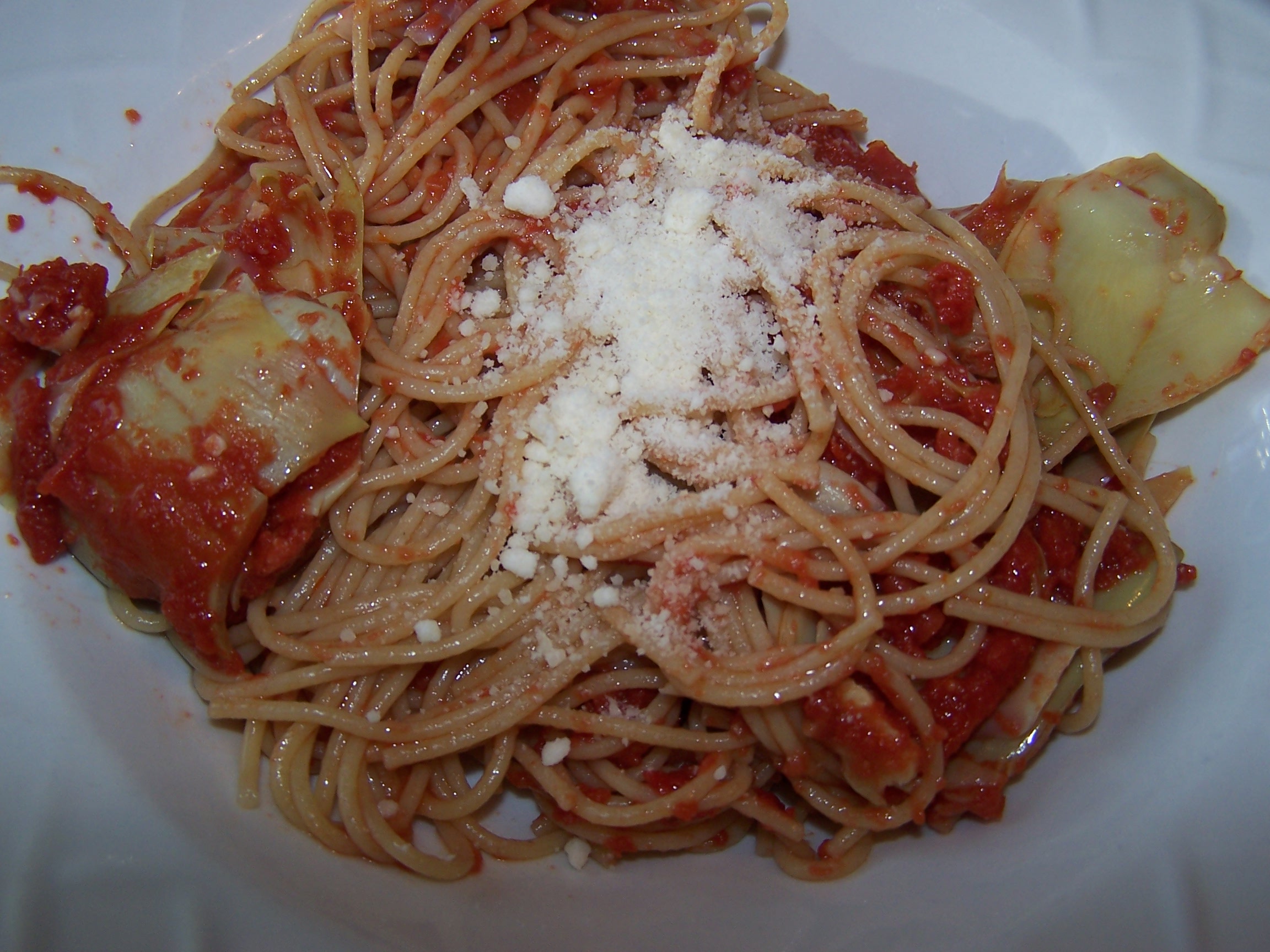 I love pasta, but I get tired of “plain old” pasta and sauce, especially when I’m out of homemade sauce. I recently came across this recipe in the May 2013 issue of Better Homes and Gardens magazine, and I happened to have artichokes on hand, so I gave it a try.