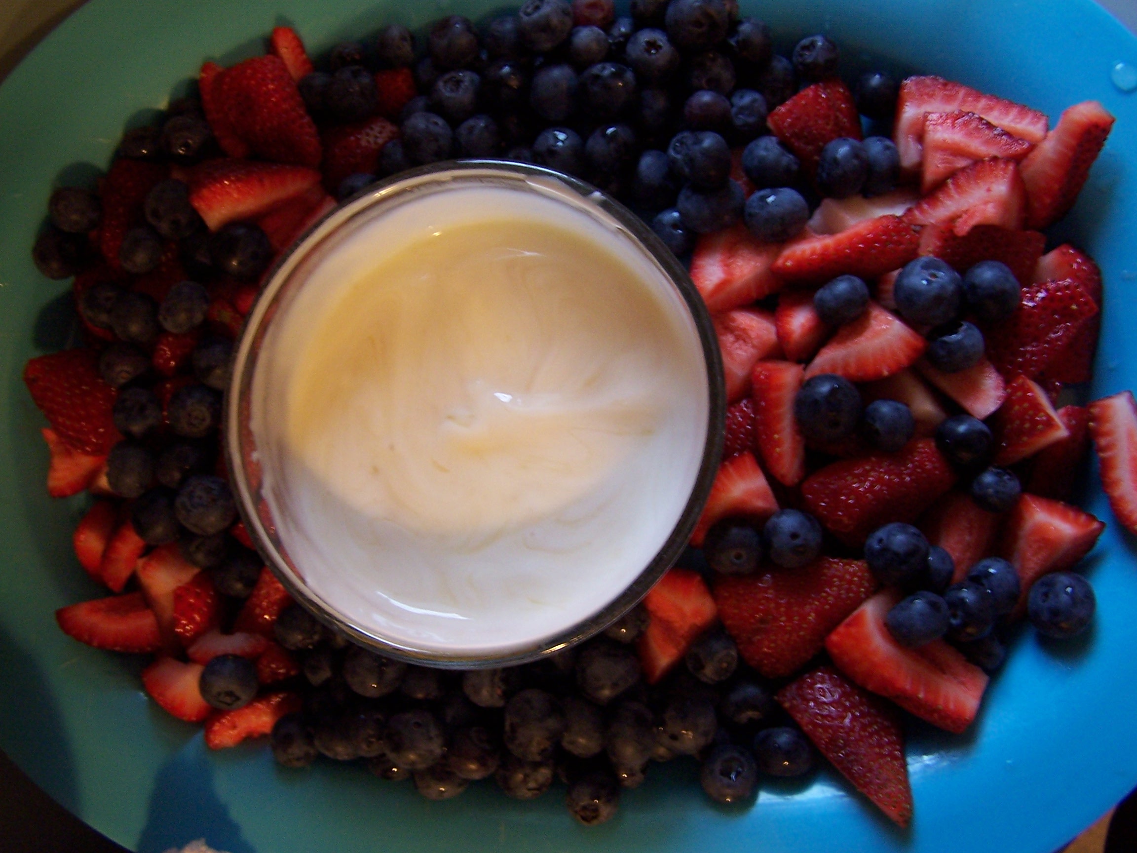 Recently I found this dip in the April 2013 issue of Good Housekeeping, which uses honey instead of sugar and the flavor is similar. We tried it out with some summer fruits and it was wonderful. I thought I’d share it with you today so that you can give it a try also.