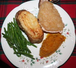 Yesterday I wrote the first part of my post about our Christmas dinner, which is a great meal for any occasion: roasted pork chops, homemade applesauce, Twice-Baked Potatoes, sauteed green beans and butternut squash.