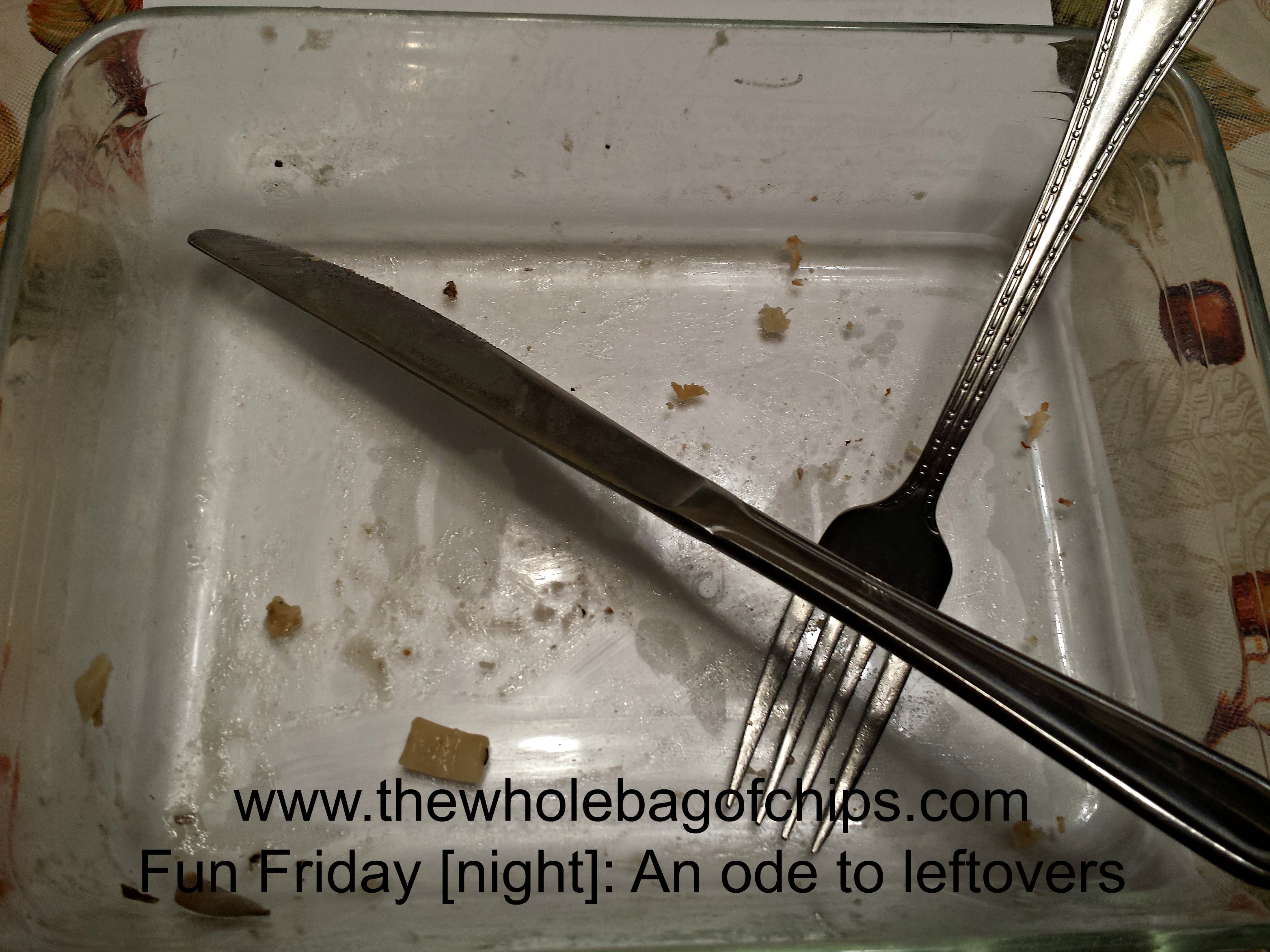 This is my empty dinner dish…I got to have my favorite dinner twice this week, once early in the week and once leftover. Do you eat leftovers?