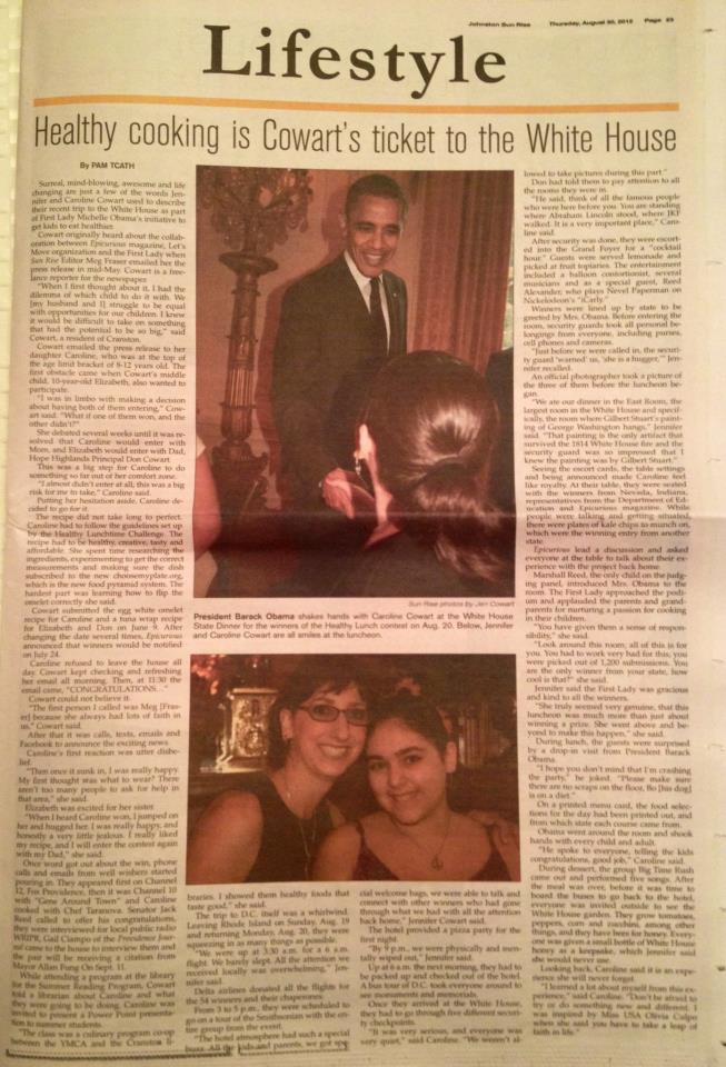 WINNING THE 2012 HEALTHY LUNCHTIME CHALLENGE WITH MY DAUGHTER, MEETING THE PRESIDENT AND FIRST LADY OF THE UNITED STATES