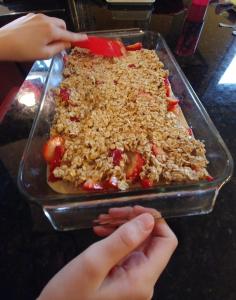 I watched them cooking in the oven. The topping seemed to be doing what it was supposed to be doing, spreading out without oozing over, and didn’t seem overly dry.