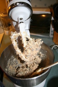 - Add in the flour, baking soda, cinnamon, and salt, stir together with a spatula.