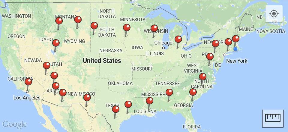 Twenty-nine states traveled in thirty-four days, staying overnight in seventeen of them.