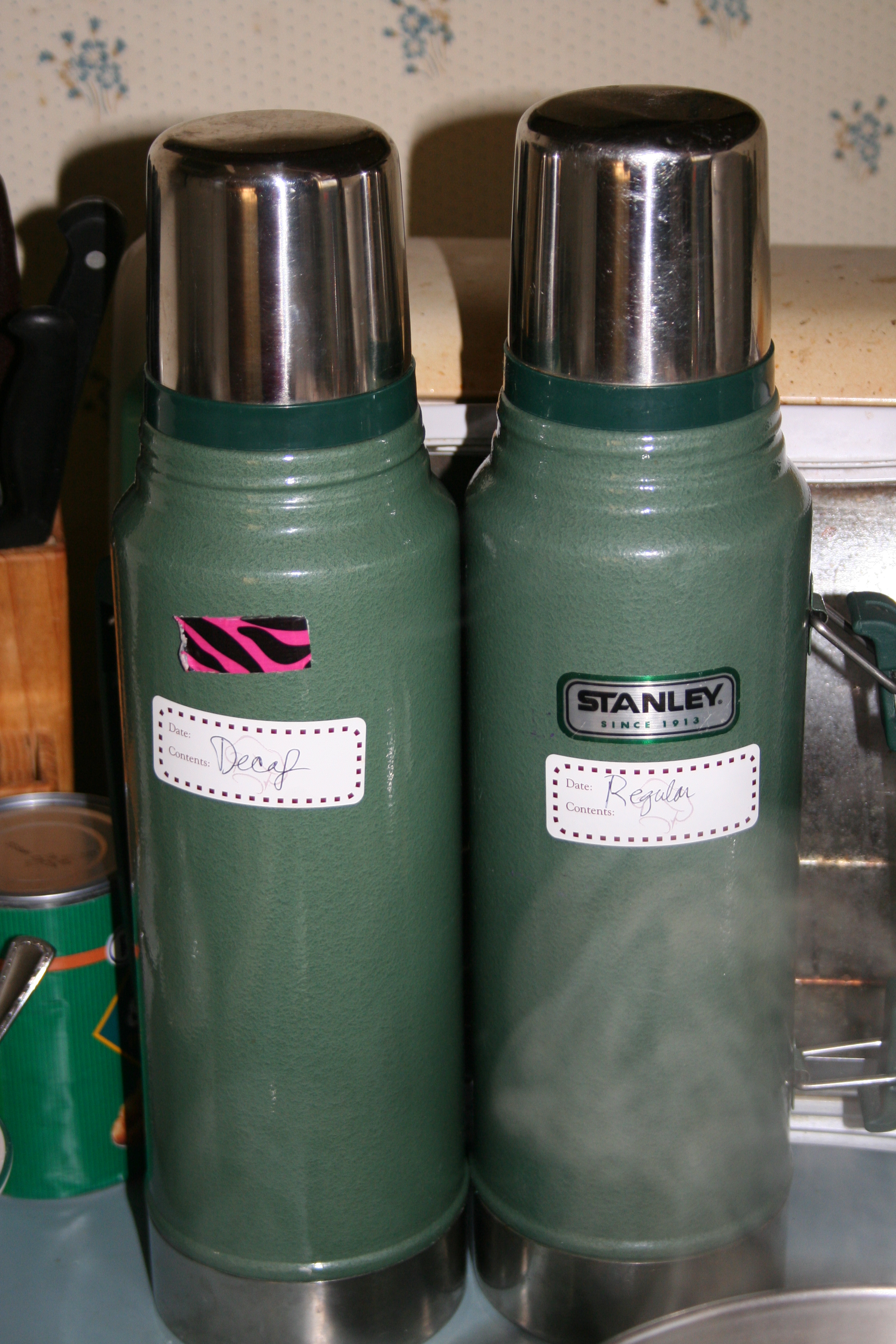 We started to dig out a little as Don went out snowblowing and I started to dig in to our blizzard preparations. I had filled two thermoses the night before: one with regular and one with decaf coffee; a must if I was going to face the day with a smile.