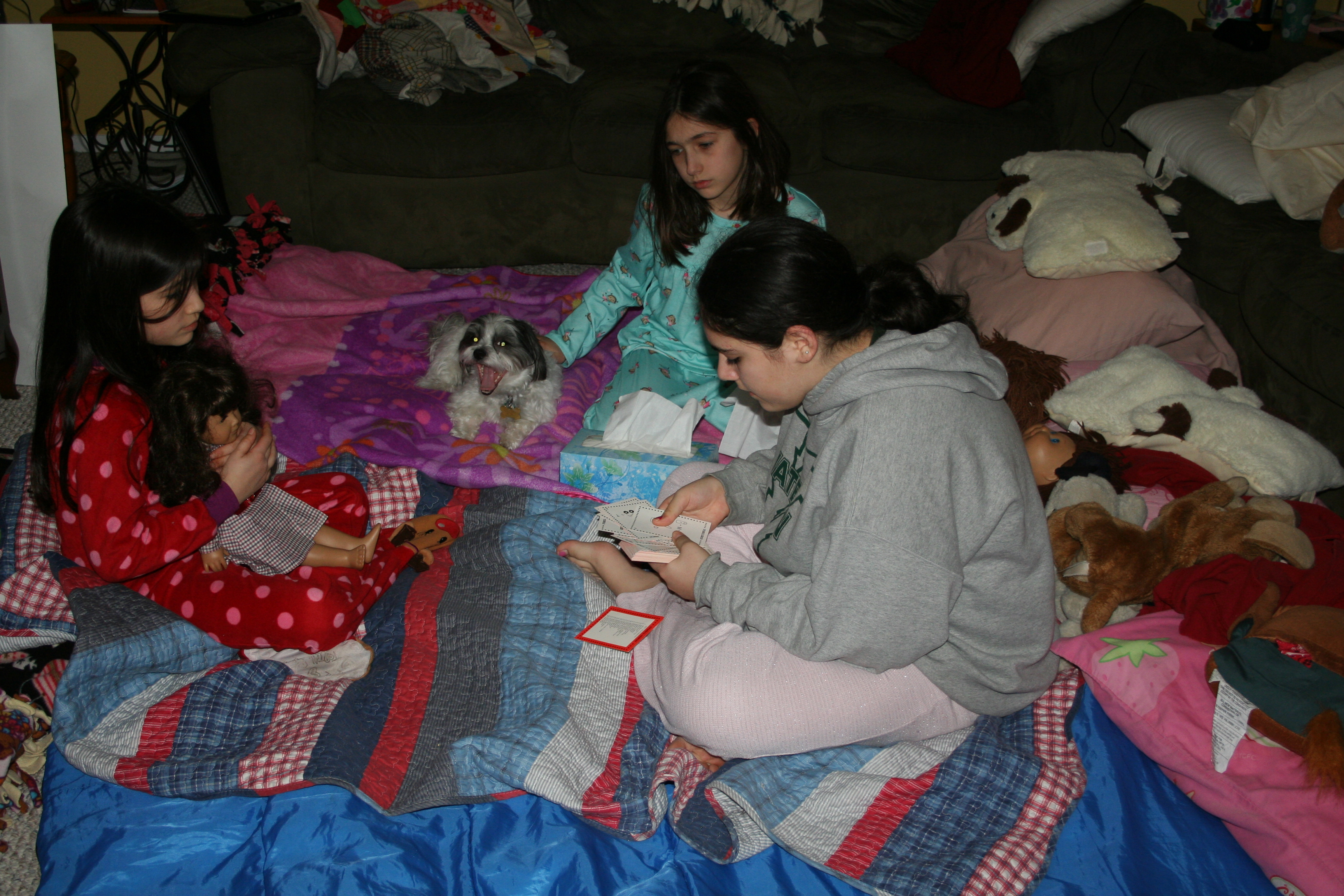 It was crazy exciting and scary all at the same time. Once the power went off we knew we’d be having the Family Campout right in the middle of our living room. We brought out the sleeping bags for the kids, as well as every blanket we owned, and set them up in the middle, with us on the two couches on either side of them.