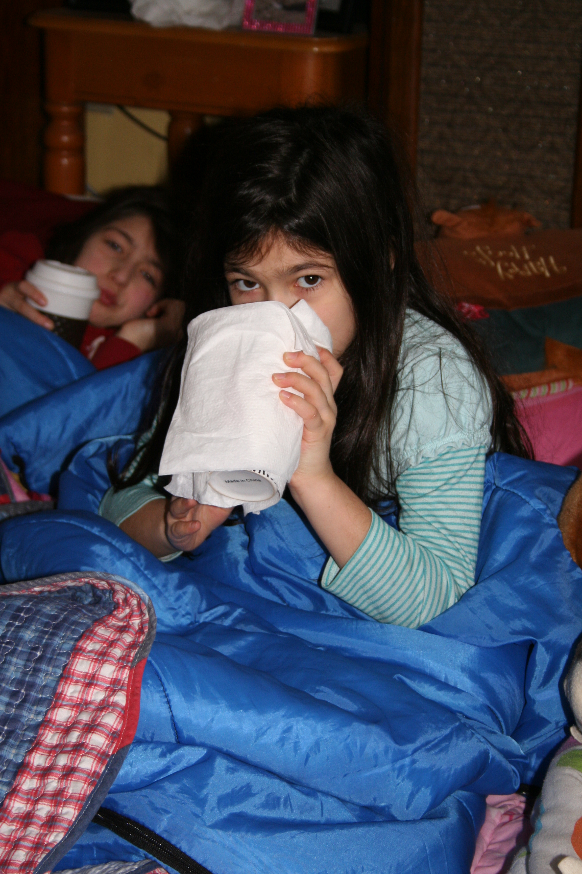 Hot chocolate in sleeping bags every morning in the living room.