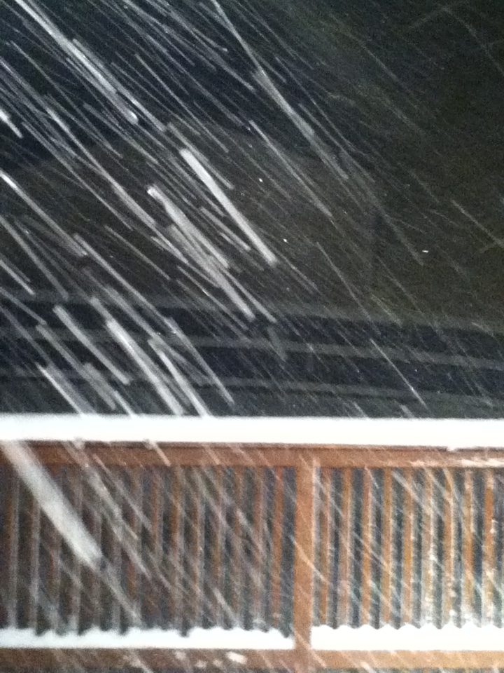 Caroline got this great shot on her iPod touch: It was snowing sideways on Friday night. 75 mph winds.