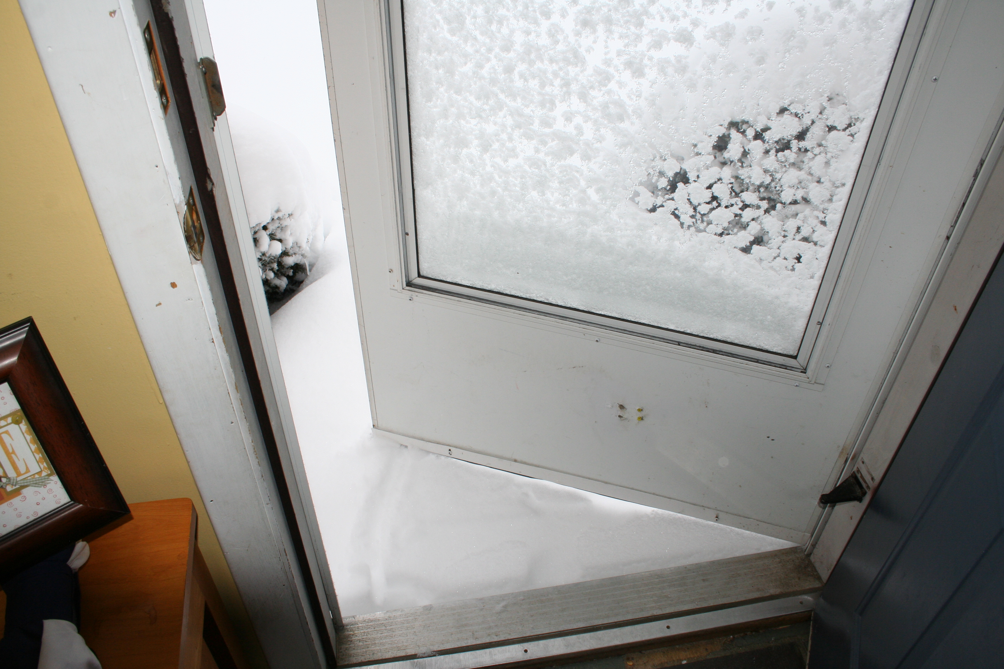 Even under the overhang outside our front door, the snow came right up to the door.