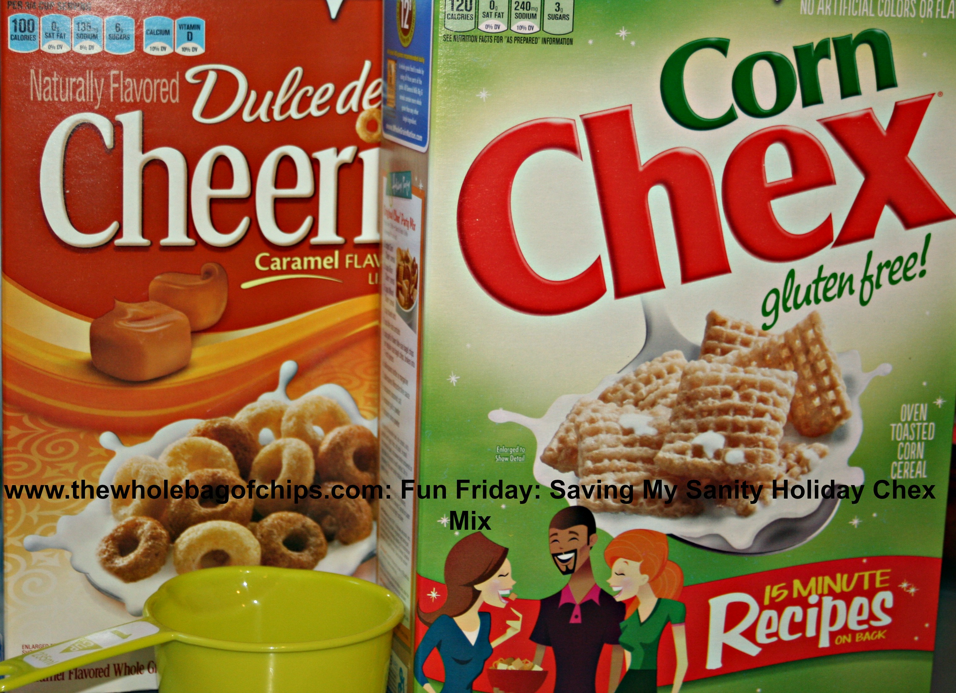 2) I substituted the Dulche le Leche flavored Cheerios for one cup of the Chex, (so two cups of Cheerios for a double recipe and ten cups of Chex.) ***2014: Substituted Frosted Cheerios instead of Dulche le Leche.***