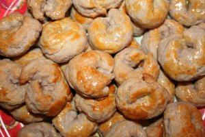 I am very, very lucky and I know it. I still have two of my grandmothers living and although they are both now in their 90s, they are both healthy and they are both tremendous cooks. I literally was born into this tradition of baking and cooking. Knowing that so many of the grandmas’ recipes were “in their heads,” we’ve taken a great deal of effort to get them to put them down on paper recently. Especially important to me are the two recipes for the cookies that go on our Christmas Cookie Trays. Grandma Rose makes hundreds of tiny Wine Biscuits each year for her trays and ours, and Grandma Grello makes her delicious iced Prune Cookies for our trays as well. Like I said, we are very lucky.