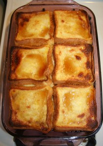 *Top with sliced French Country bread* (enough slices to fit casserole dish)