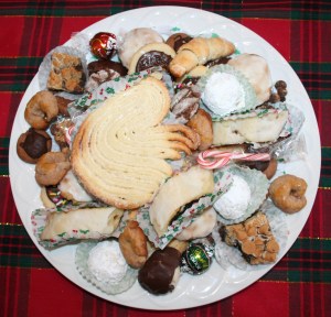 First off, there’s the tray of Christmas Cookies. Together with my mom and two grandmothers, we put together a tray of cookies that has about 13 different varieties to choose from. We all have our favorites.