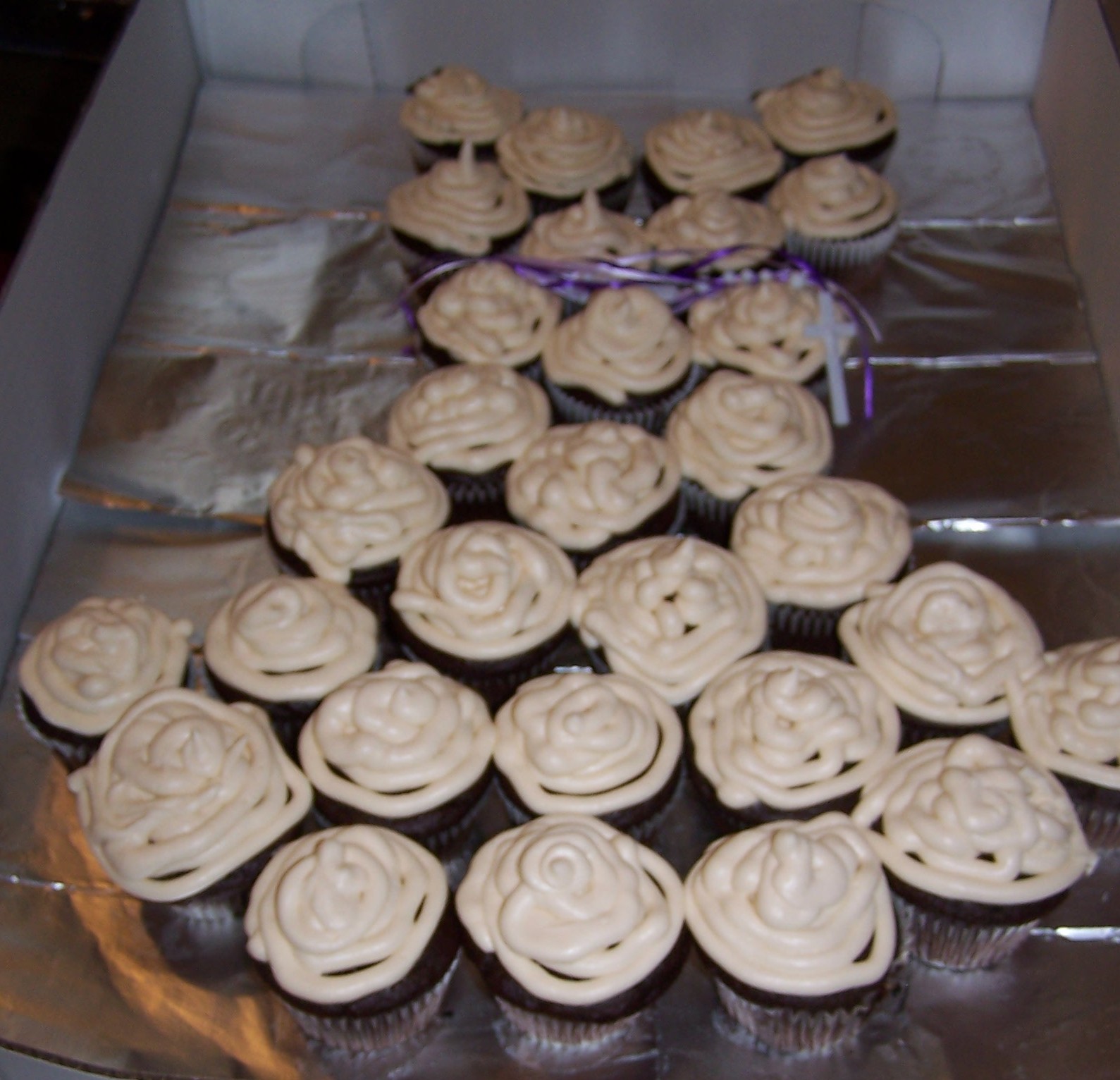 So when I came across a unique idea for a cake, I thought right away that Alexandra would love it. It was made out of chocolate cupcakes frosted in white, and it formed the shape of a dress. I think in the photo it might’ve been designed as a wedding dress, but to me it screamed First Communion and it was *so* very Alexandra.