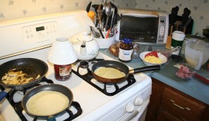 I hung my bunch up on the hook in the kitchen, only to have him bring his two bunches up later that day. Suddenly, we had *a lot* of bananas.