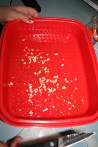 Being a Saturday afternoon around lunchtime, the samples were in full swing. Roaming a store, trying out new things, is one of our family’s favorite things to do. On that day we were given samples of a new favorite granola and of this Garlic Parmesan Broccoli. Although my family tends to really like broccoli, they really LOVED this recipe. As we took our samples, the employee at Whole Foods handed us the paper copy of the recipe. I folded it and put it in my purse and kind of forgot about it. It was late January or early February when we were there, and it was probably the end of February when I remembered I had it and tried it out one night. Sometimes when you make something at home after having had it out, it might not come out the same way. This recipe was seemingly impossible to mess up, and it came out great. I don’t always have fresh broccoli on hand, but I use my Pampered Chef hand-held food chopper to chop frozen broccoli florets after they’re cooked, and it works out great.